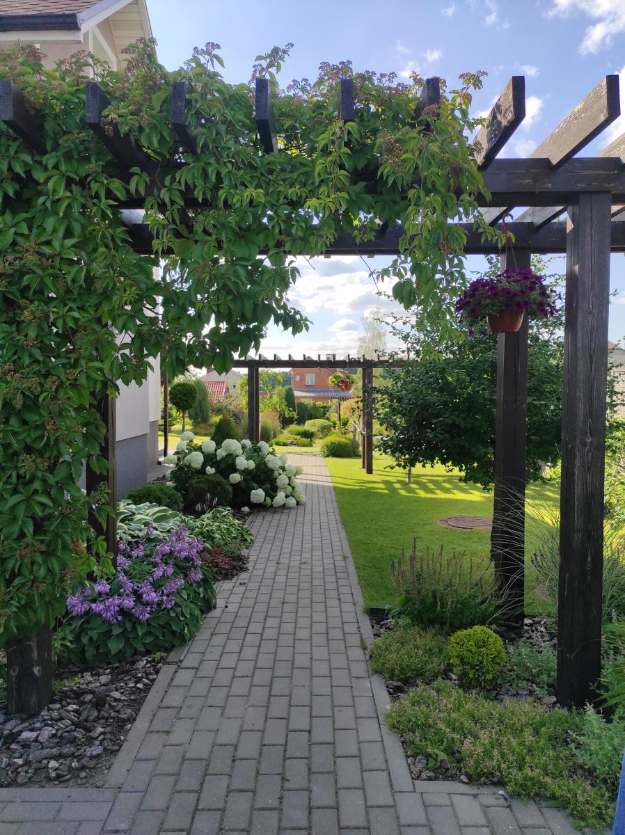 Красивый современный сад, где хозяйка, она же дизайнер, профессионально поработала с МАФ, которые поддерживают архитектуру дома, зонируют участок. Удачно подобранный ассортимент растений наполняет сад пейзажными красками.