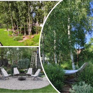 Это еще молодой сад, заложен 5 лет назад. В нем ярко читается задуманная идея: в современном стильном саду широко используются элементы природного стиля — травы и злаки, которые служат продолжением лесного ландшафта. Грамотно организован рельеф в виде террас, на участке есть место притяжения всей семьи. Контейнерное озеленение придает участку современный и элегантный вид.